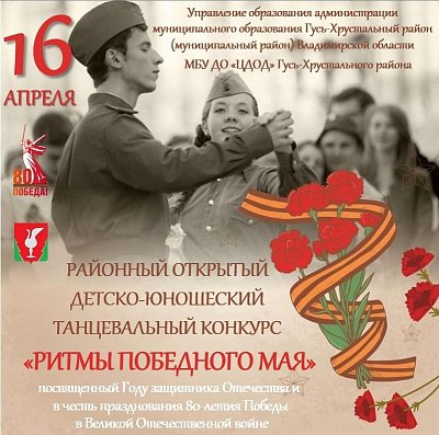 Районный открытый детско-юношеский танцевальный конкурс «Ритмы победного мая», посвященный Году защитника Отечества в Российской Федерации и в честь празднования 80-летия Победы в Великой Отечественной войне