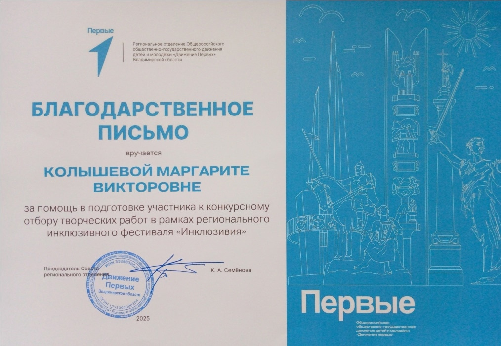 Воспитанники изостудии "Вдохновение" Шестаков Юрий и Елисеев Иван с педагогом Колышевой Маргаритой Викторовной приняли участие в региональном инклюзивном фестивале "Инклюзивия".
